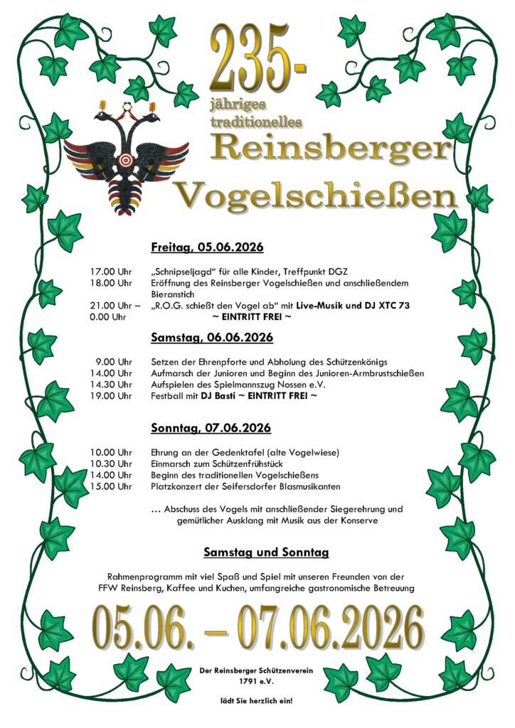 • 235-jähriges traditionelles Reinsberger Vogelschießen
